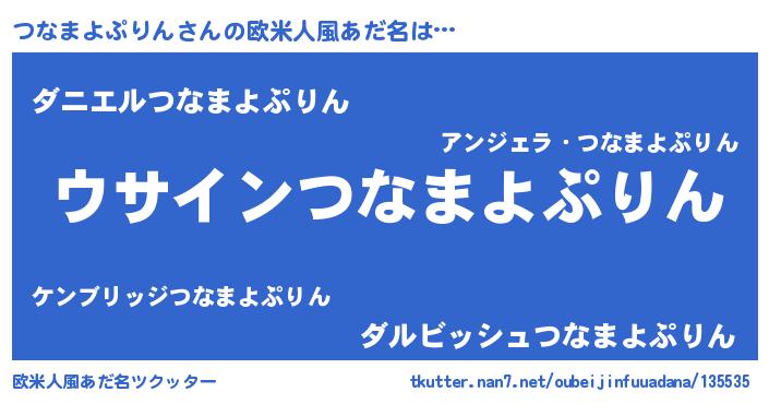 | ポケモン風あだ名 | 『ヒツナマヨプリン』『ツックウザ』 |