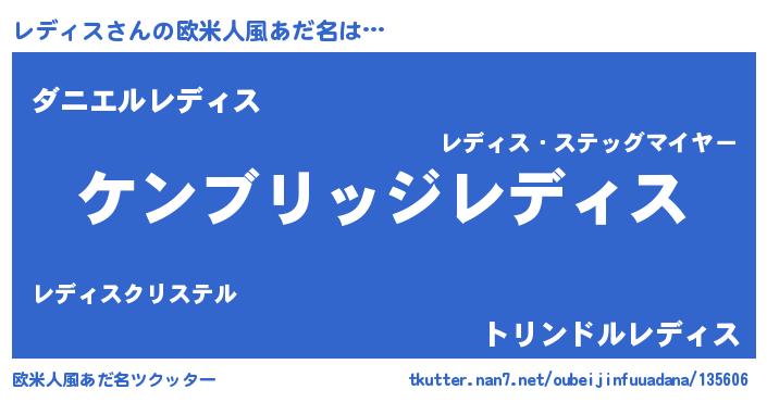 | 男性向けラノベタイトル風あだ名 | 『Re:レディスから始める異世界生活』 |
