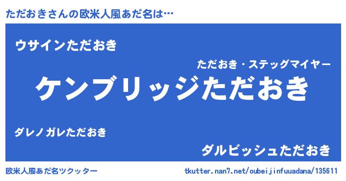 | 女子向けラノベタイトル風あだ名 | 『ただおきなんてお断りですっ。』 |