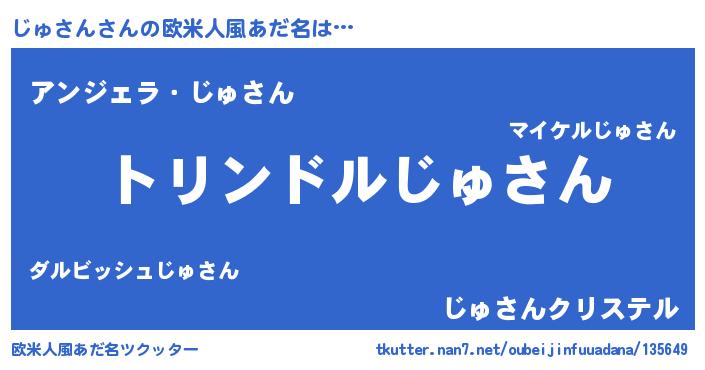 | 男性向けラノベタイトル風あだ名 | 『じゅさん~年齢イコール彼女いない歴の魔法使い~』 |