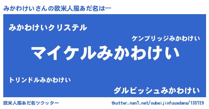 | 男性向けラノベタイトル風あだ名 | 『みかわけいの憂鬱』 |