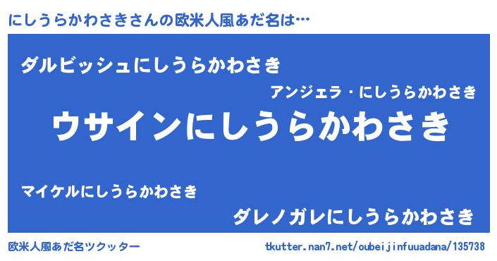 | ヘコむあだ名 | 『にしっ子』『にしうらかわさき(笑)』 |