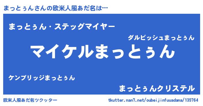 | 男性向けラノベタイトル風あだ名 | 『まっとぅんの憂鬱』 |