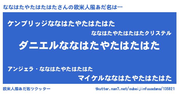 | 男性向けラノベタイトル風あだ名 | 『おまえをオタクにしてやるから、俺をななはたやたはたはたにしてくれ! 』 |