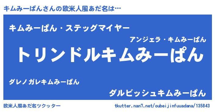 | 女子向けラノベタイトル風あだ名 | 『キムみーぱんの玉の輿計画!』 |