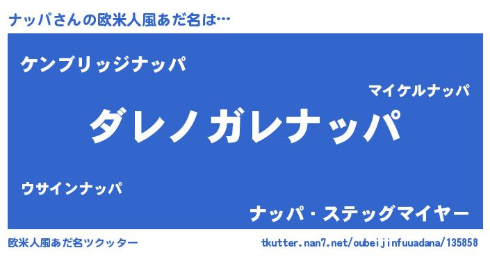 | 男性向けラノベタイトル風あだ名 | 『魔弾の王とナッパ』『ナッパの憂鬱』 |