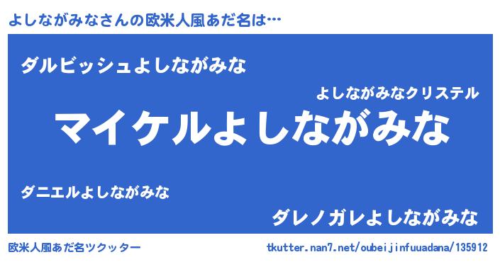 | 男性向けラノベタイトル風あだ名 | 『ヨシナガミナアートオンライン』 |
