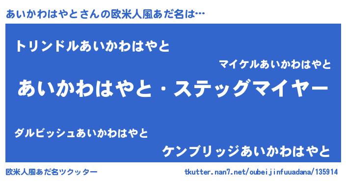 | ヘコむあだ名 | 『あいもー』『あいかわはやと(苦笑)』 |