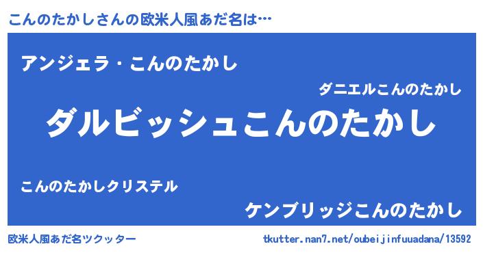 | 男性向けラノベタイトル風あだ名 | 『こんのたかしという概念が存在しない退屈な世界 』 |