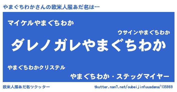 | 男性向けラノベタイトル風あだ名 | 『この素晴らしい世界にやまぐちわかを!』 |