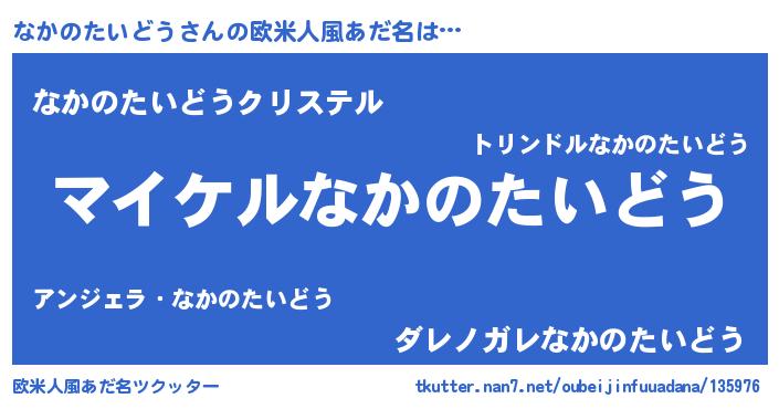 | 男性向けラノベタイトル風あだ名 | 『ナカノタイドウアートオンライン』 |