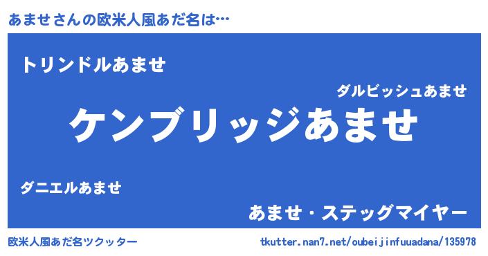 | 男性向けラノベタイトル風あだ名 | 『Re:あませから始める異世界生活』 |