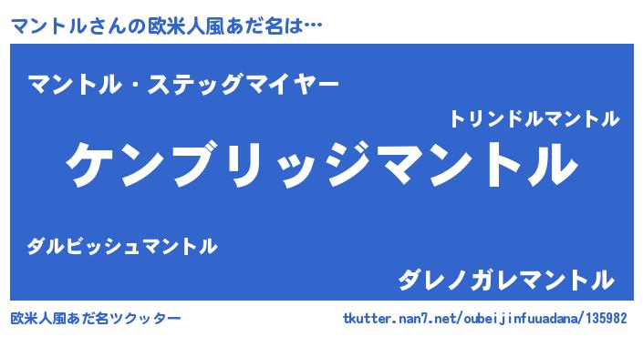 | ヘコむあだ名 | 『マントル(震え声)』『マンっふぃ~』 |