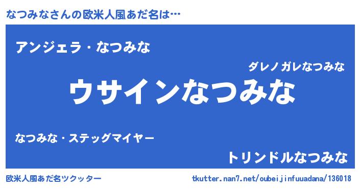 | 女子向けラノベタイトル風あだ名 | 『なつみなは平凡を望む』 |