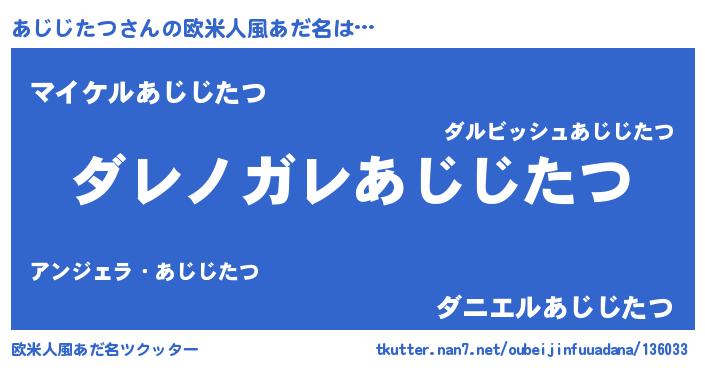 | 男性向けラノベタイトル風あだ名 | 『この素晴らしい世界にあじじたつを!』 |