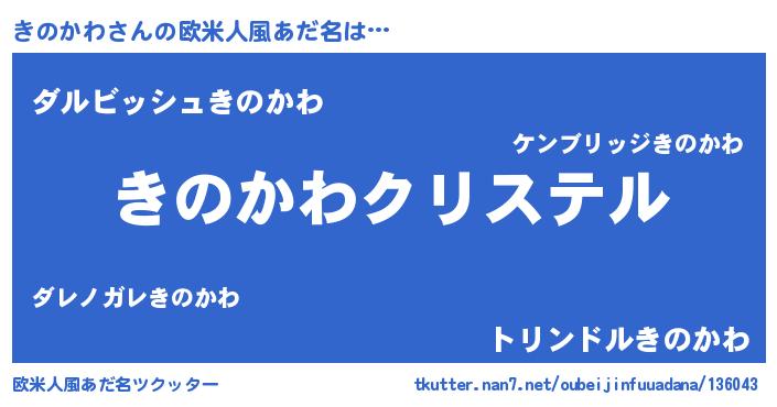 | 女子向けラノベタイトル風あだ名 | 『きのかわの雑貨屋さん』『闇のきのかわ』 |