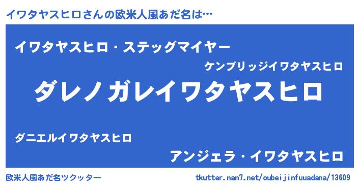 | 意味不明あだ名 | 『住所不定無職イワタヤスヒロ(2歳)』 |