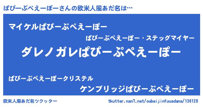 | 男性向けラノベタイトル風あだ名 | 『この素晴らしい世界にぱぴーぷぺえーぽーを!』 |