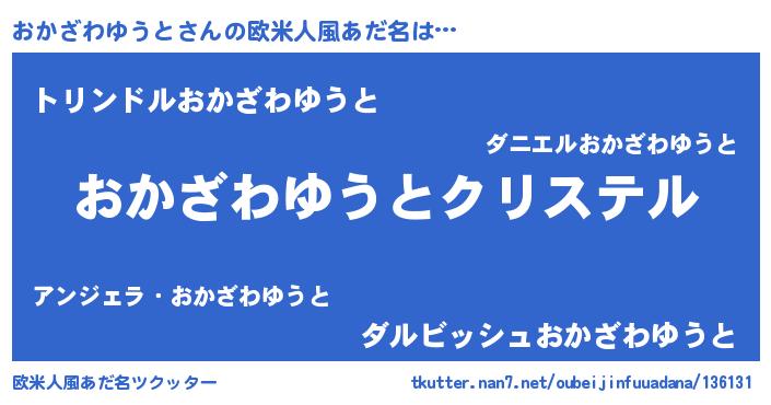 | 男性向けラノベタイトル風あだ名 | 『やはりおかざわゆうとの青春ラブコメはまちがっている 』 |