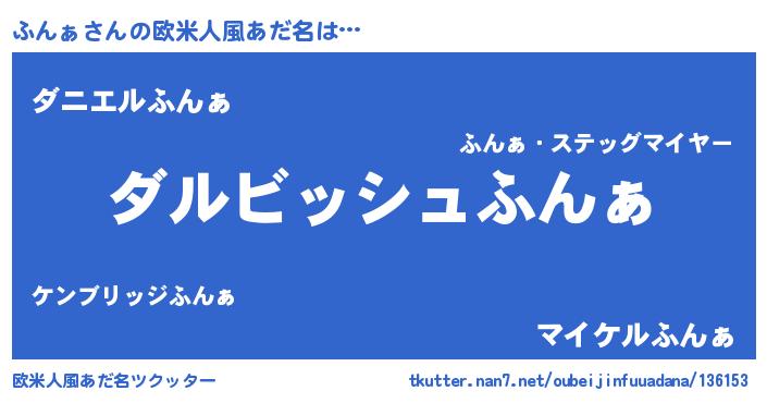 | 男性向けラノベタイトル風あだ名 | 『ふんぁという概念が存在しない退屈な世界 』 |