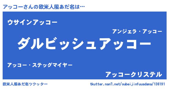 | 男性向けラノベタイトル風あだ名 | 『アッコーという概念が存在しない退屈な世界 』 |