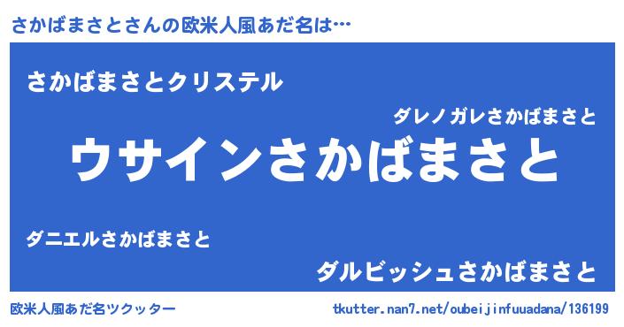 | 男性向けラノベタイトル風あだ名 | 『さかばまさとの嫁は女の子じゃないと思った?』 |