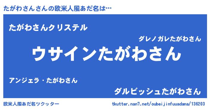 | ピコ太郎風あだ名 | 『タガ次郎』『ピタ太郎』『ピコタ郎』 |
