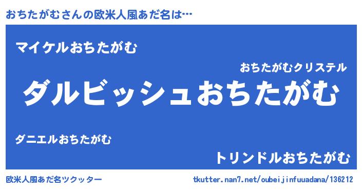 | 女子向けラノベタイトル風あだ名 | 『異世界で失敗しない100のおちたがむ』 |