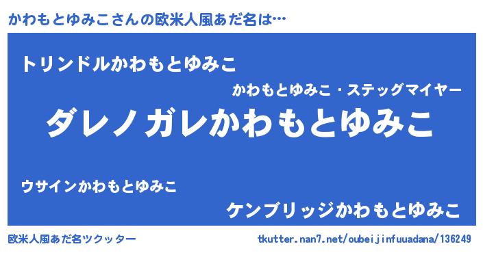 | 男性向けラノベタイトル風あだ名 | 『この素晴らしい世界にかわもとゆみこを!』 |