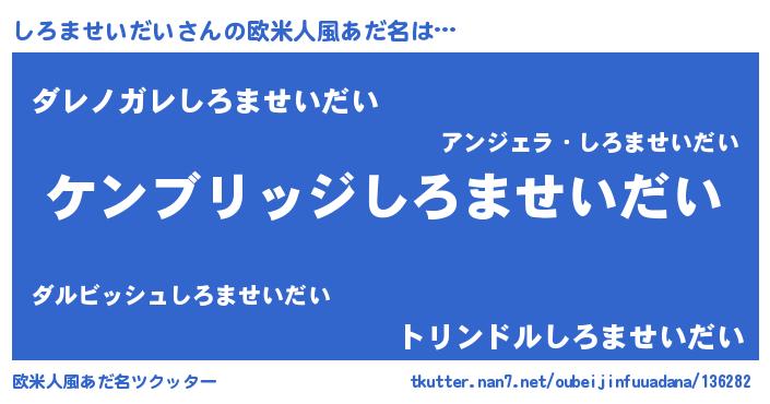 | 意味不明あだ名 | 『自称しろませいだい』 |