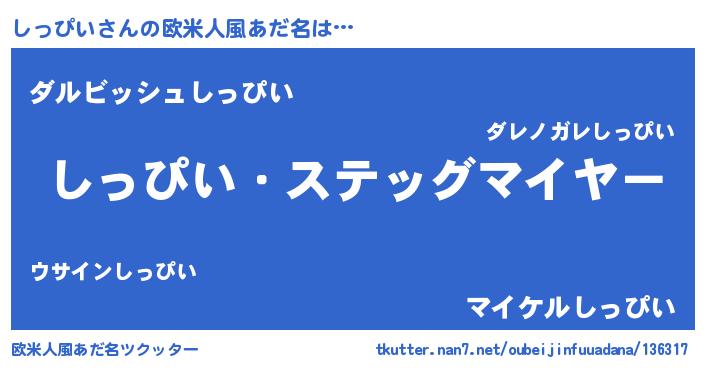 | 男性向けラノベタイトル風あだ名 | 『うちのしっぴいが世界を掌握している!』 |