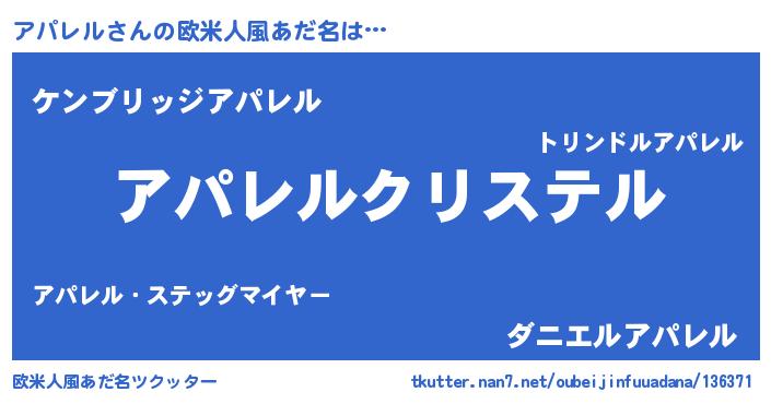 | ポケモン風あだ名 | 『アパレダネ』『アパセウス』 |