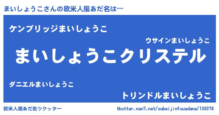 | 男性向けラノベタイトル風あだ名 | 『やはりまいしょうこの青春ラブコメはまちがっている 』 |