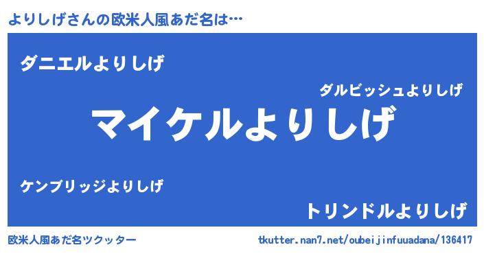 | 男性向けラノベタイトル風あだ名 | 『ヨリシゲアートオンライン』 |