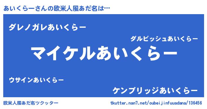 | 男性向けラノベタイトル風あだ名 | 『あいくらーの憂鬱』 |