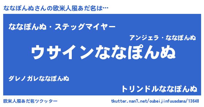 | 男性向けラノベタイトル風あだ名 | 『ダンジョンにななぽんぬを求めるのは間違っているだろうか』 |