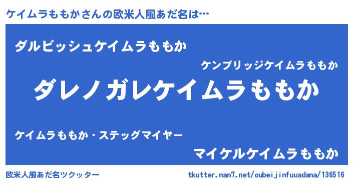 | ヘコむあだ名 | 『ケイムラももか(笑)』『ケイにゅー』 |