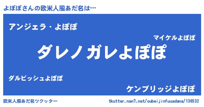 | 意味不明あだ名 | 『住所不定無職よぽぽ(2歳)』『自称よぽぽ』 |
