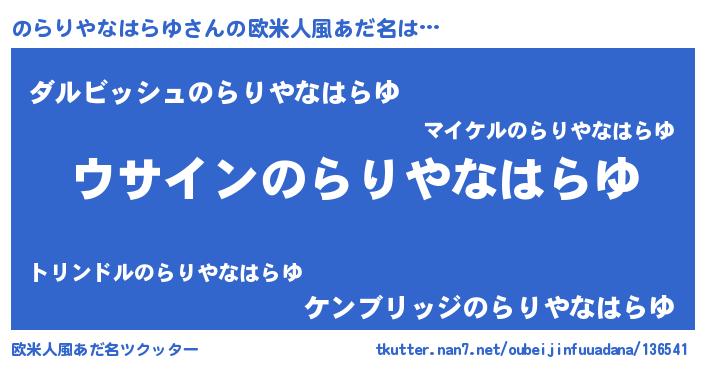 | 意味不明あだ名 | 『とにかく怪しいのらりやなはらゆ』 |