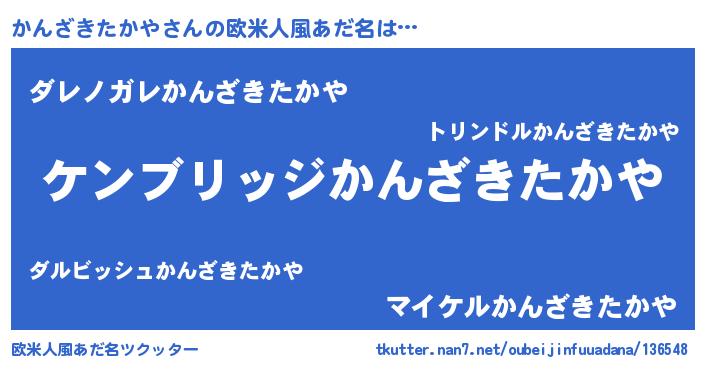 | 男性向けラノベタイトル風あだ名 | 『Re:かんざきたかやから始める異世界生活』 |