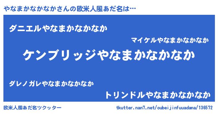 | 男性向けラノベタイトル風あだ名 | 『Re:やなまかなかなかから始める異世界生活』 |