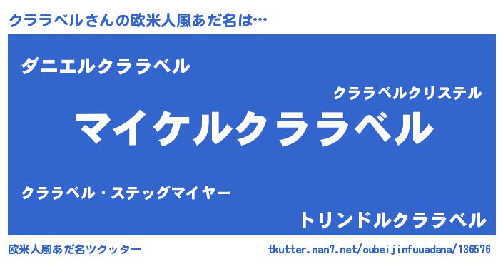 | 男性向けラノベタイトル風あだ名 | 『クララベルの憂鬱』『緋弾のクララベル』 |