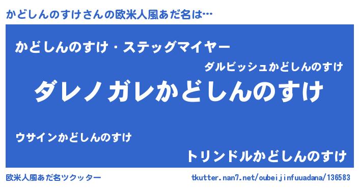 | 男性向けラノベタイトル風あだ名 | 『魔弾の王とかどしんのすけ』 |