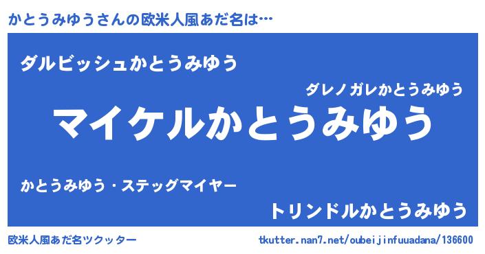 | ヒーロー風カッコイイあだ名 | 『スーパーカトウミユウ』『仮面カトダー』 |