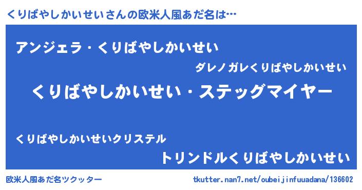 | 男性向けラノベタイトル風あだ名 | 『うちのくりばやしかいせいが世界を掌握している!』 |