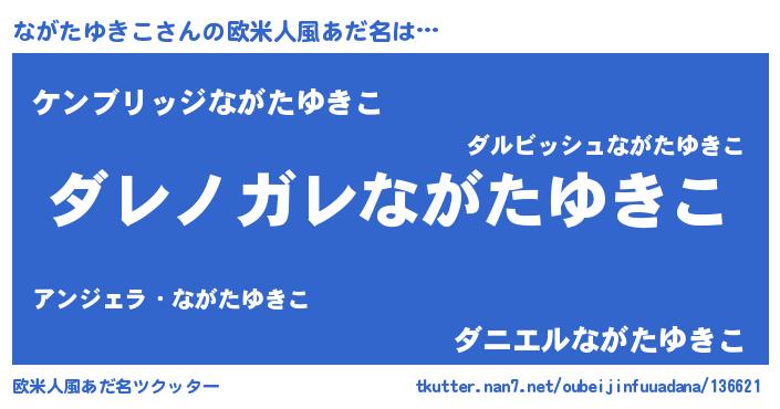 | 男性向けラノベタイトル風あだ名 | 『この素晴らしい世界にながたゆきこを!』 |