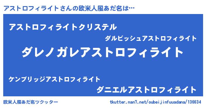 | 男性向けラノベタイトル風あだ名 | 『この素晴らしい世界にアストロフィライトを!』 |