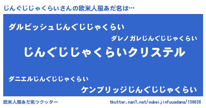 | 意味不明あだ名 | 『じんぐじじゃくらいフォーエバー』 |