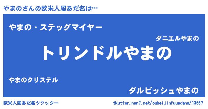| 男性向けラノベタイトル風あだ名 | 『やまの~年齢イコール彼女いない歴の魔法使い~』 |