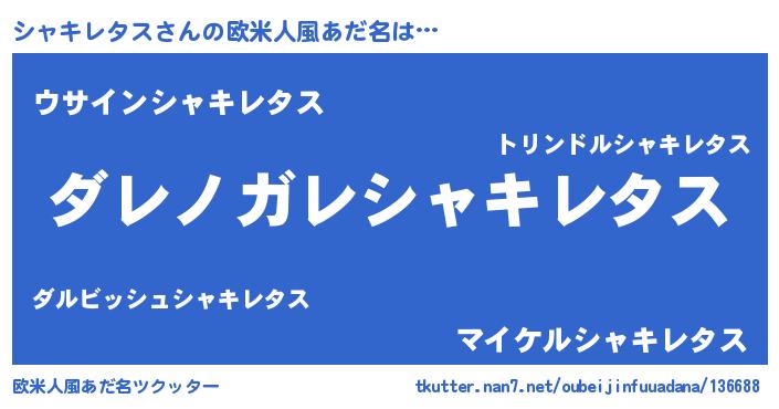 | 意味不明あだ名 | 『住所不定無職シャキレタス(47歳)』 |